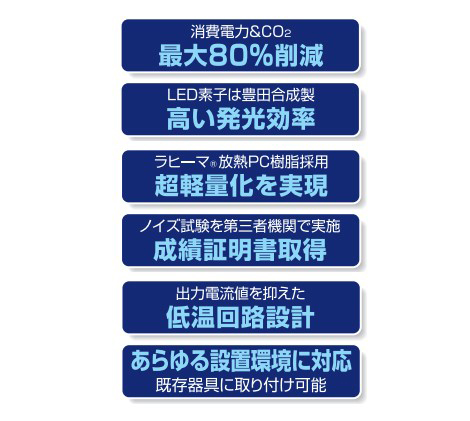 ●LEDランプで省エネ対策。消費電力とCO2を同時に最大80%削減します。